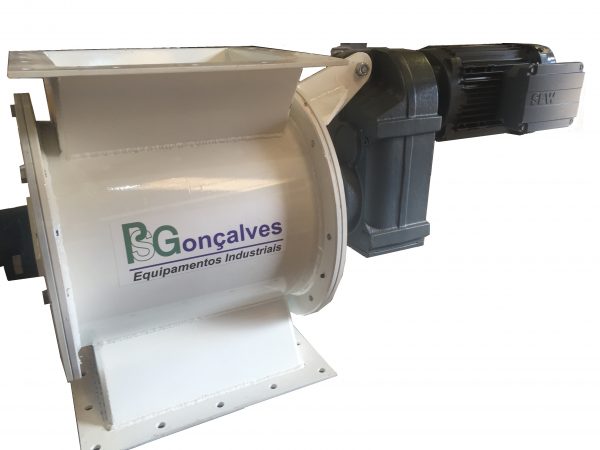 Equipamento utilizado para controlar a quantidade de material a ser descarregado, utilizado em sistemas de ar e outros equipamentos. Construída com materiais de aço carbono ou aço inox, tudo de acordo com os padrões e necessidade do cliente. Rotor construído com laminas e discos montados sobre tubo no padrão SCH, com pontas de eixo no padrão SAE 1045. Conta com um sistema de vedação na saída do eixo, para evitar a acumulo de material nos rolamentos e mancais, evitando a criação de pontos de contaminação. Acionada por sistema de motorredutor, com acoplamento direto ao eixo.